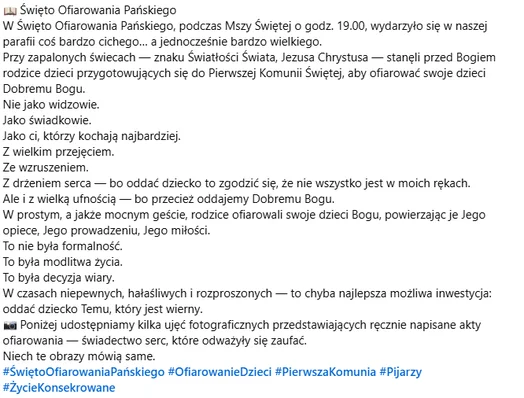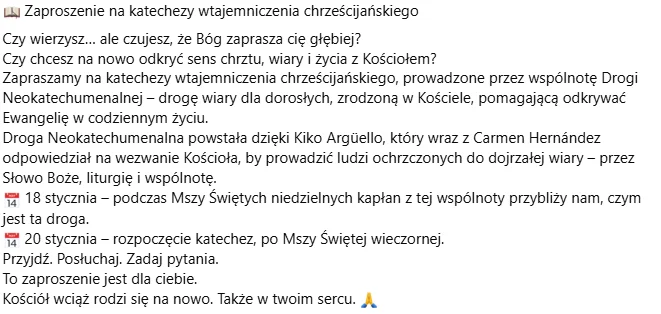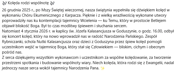 Niech to doświadczenie rozbrzmiewa dalej w naszej parafii, w domach i sercach — jak pieśń, która nie cichnie, bo płynie z miłości do Boga!