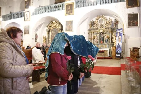 Po Mszy Świętej odbyło się nabożeństwo, podczas którego kustosz jako pierwszy został okryty Płaszczem Maryi, a następnie wszyscy wierni, którzy pragnęli zawierzyć się Jej opiece. Był to moment głęboko poruszający – wierni podchodzili w grupach, a pozostali trwali w modlitwie różańcowej, zanosząc prośby do Jezusa ukrytego w Najświętszym Sakramencie przez ręce Matki Bożej.