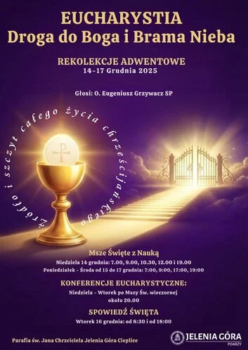 Msze Święte z naukami rekolekcyjnymi dla ogółu wiernych będą sprawowane od poniedziałku do środy o godz.: 7.00, 9.00, 17.00 i 19.00.