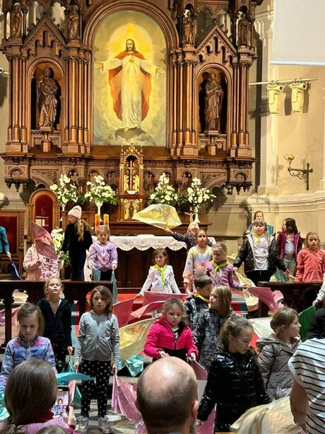 Kulminacją tej drogi była Msza Święta w Niedzielę Dobrego Pasterza – 11 maja 2025 o godz. 12.00, podczas której dzieci zawierzyły się Trzem Sercom, wypowiadając słowa pełne zaufania i oddania: