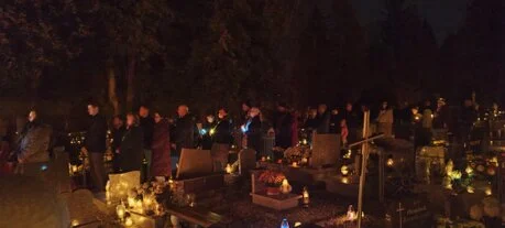 Rozpoczęliśmy w kaplicy cmentarnej – miejscu ciszy i modlitwy – by następnie wśród grobów, w świetle świec i refleksji, obwieszczać zwycięstwo Chrystusa nad śmiercią.