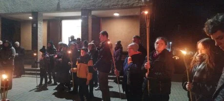 W połowie drogi, przy figurze św. Michała Archanioła, wypuściliśmy w niebo iskierki światła – symbol naszej wiary, że Boży blask rozświetla mrok świata.